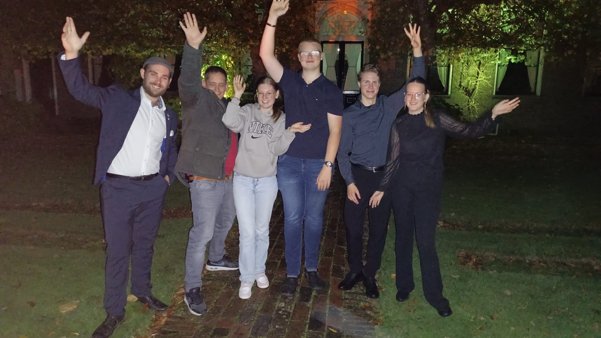 We hebben van de gelegenheid gebruik gemaakt om een paar groepsfoto's te maken, buiten voor de borg. Nogal een uitdaging in het donker, maar het was een mooie belevenis.